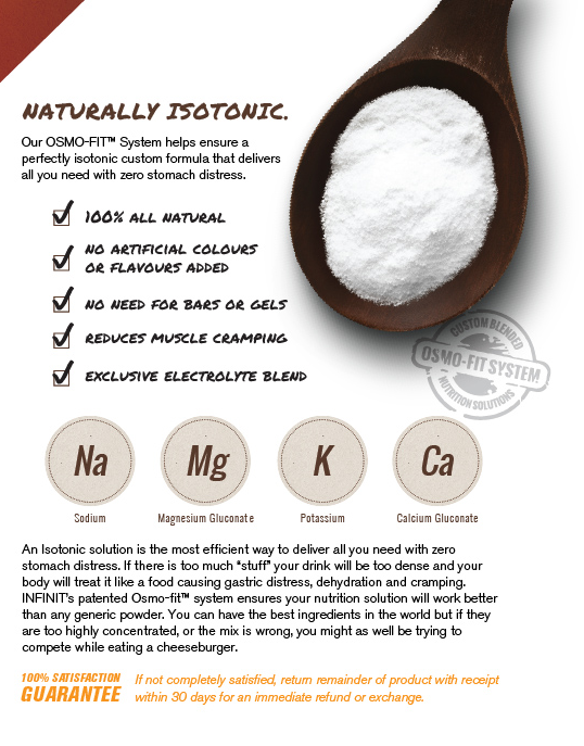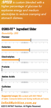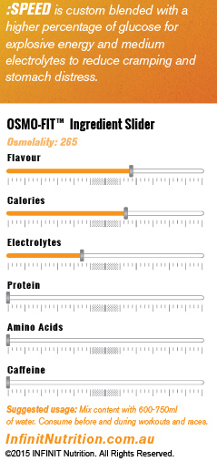 Formulated specifically for those shorter, faster efforts where you demand the most from your body, and your nutrition. :SPEED incorporates a higher percentage of INFINIT glucose for explosive energy and it’s packed full of electrolytes to eliminate any cramping or stomach distress during anaerobic efforts.