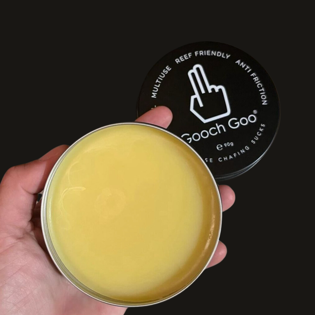 Gooch Goo anti-chafing balm is not just for your Gooch! Because of its all natural ingredients, you can apply Gooch Goo anywhere. Plus it won’t disintegrate your wetsuit or clothing like petroleum based alternatives.