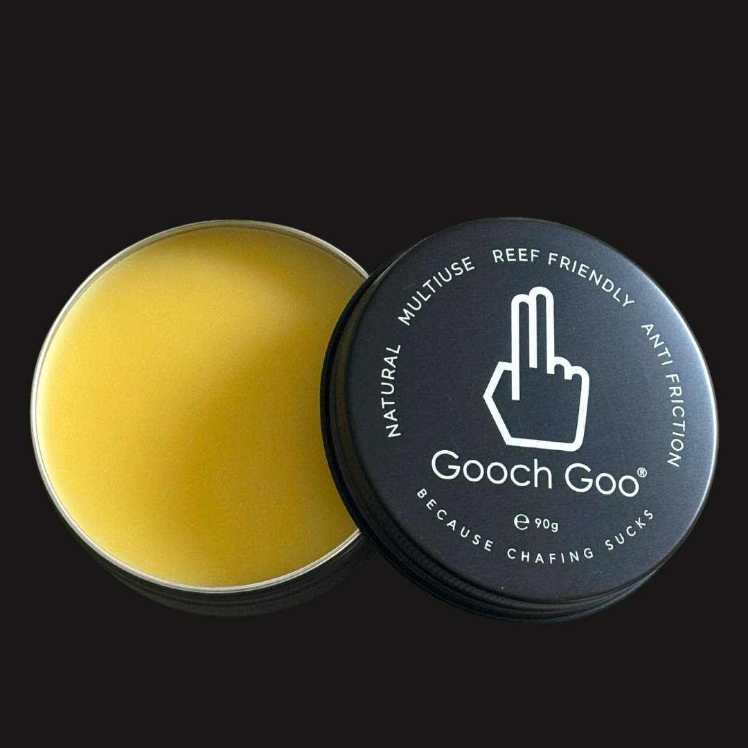 Gooch Goo anti-chafe balm, soothes, repairs and protects the skin, during prolonged physical activity, both in and out of the water.