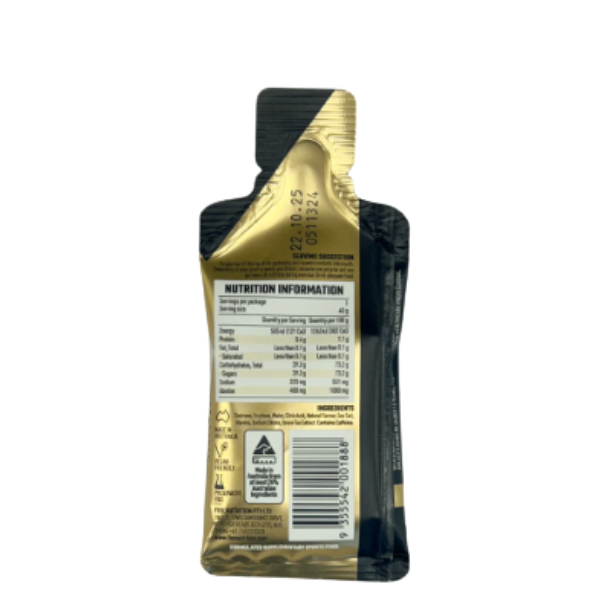 Dual Source Energy Gel with a 1:.08 Carbohydrate Fructose Ratio that improves the efficiency of utilisation on ingested carbohydrates, reduces the utilisation of carbohydrates stored and can help reduce symptoms of stomach bloating & nausea.