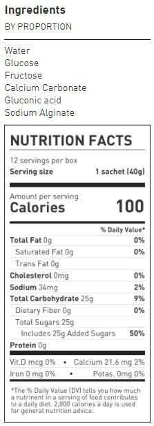 It's a well-known fact that our bodies can absorb about 60g of carbs an hour in the form of glucose/maltodextrin. But when the ratio of fructose to those carbs is 0.5:1, we can intake up to 90g/hr! Recent research even suggests that upping the fructose content beyond 0.5:1 can yield even better results. And GEL 100 CAF 100 is based on a 0.8:1 fructose-to-glucose ratio, so each serving offers 25g of carbs.