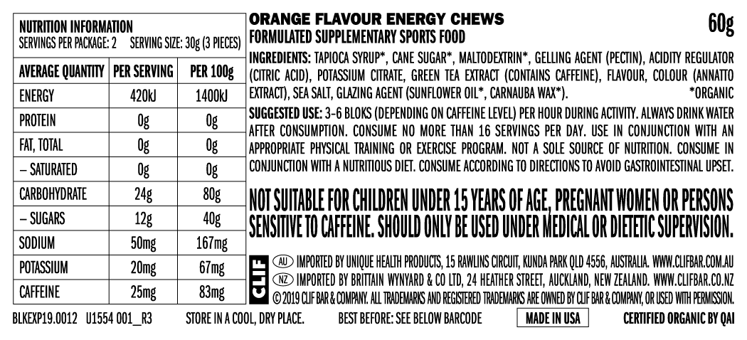Made with 95% organic ingredients CLIF SHOT BLOKS Energy Chews are semi-solid, easy-to-chew sources of carbohydrates, your body’s preferred source of fuel during activity.