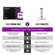 If you are a light sweater move towards the 500mg strength. If you lose a lot of sweat while training and are looking to keep your sodium levels topped up to prevent cramps, give the 1500mg strength a try. Somewhere in the middle? The 1000mg is for you. For athletes with moderate to high sweat/sodium losses. Learn more about starting hydrated